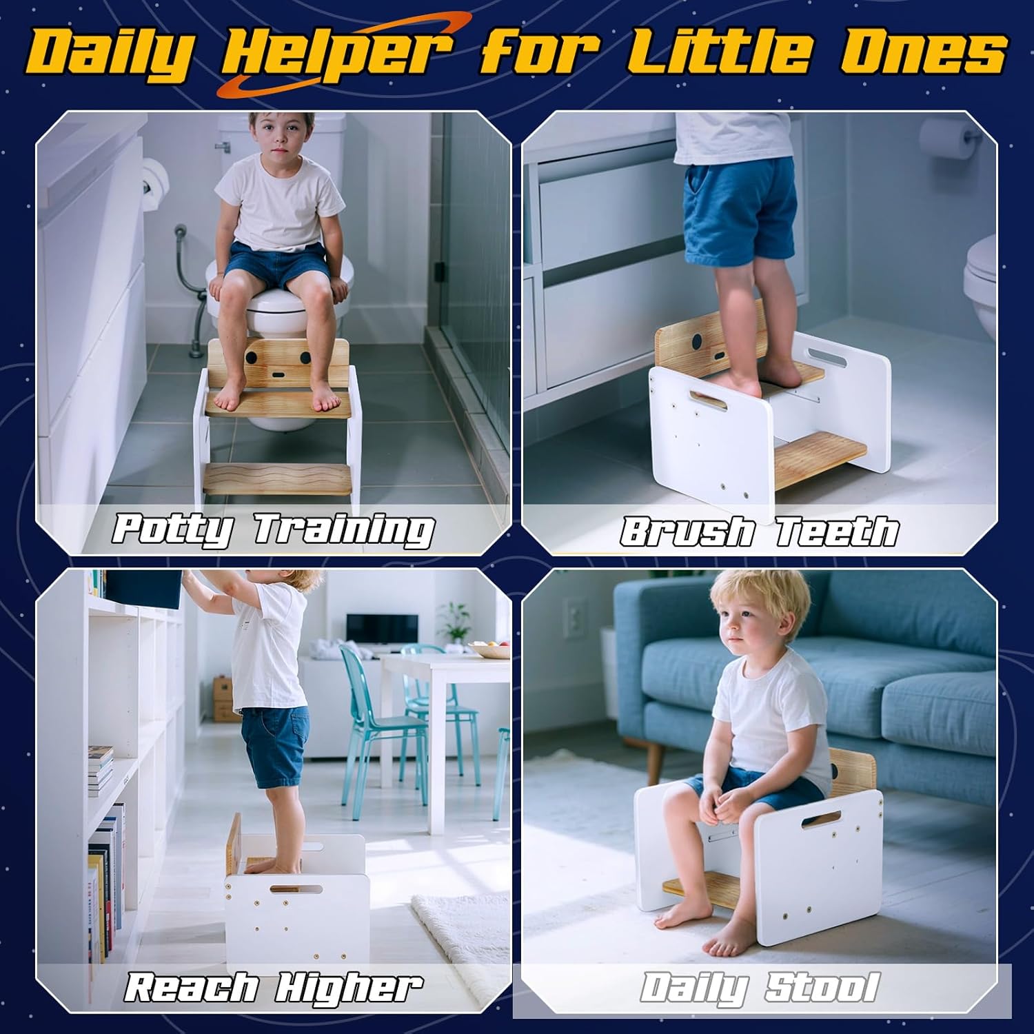 • Multi-Purpose Use for Daily Activities:Perfect for tooth brushing, hand washing, potty training, reaching kitchen counters, or assisting pets. The dual-step height makes it adaptable for a variety of tasks, encouraging independence while keeping children safe.