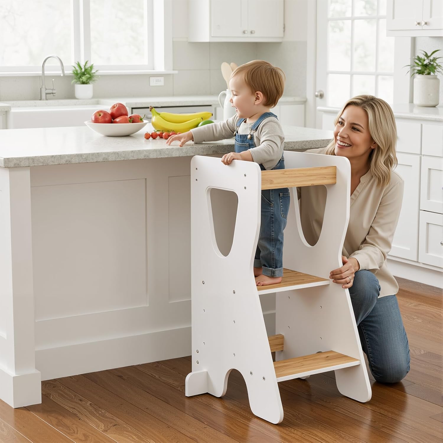 • Superior structural stability and safety: The learning tower features a robust R-shaped design that effectively prevents tipping and significantly increases overall stability. Ideal learning tower for children from 1 year old as well as for children from 2 years old.