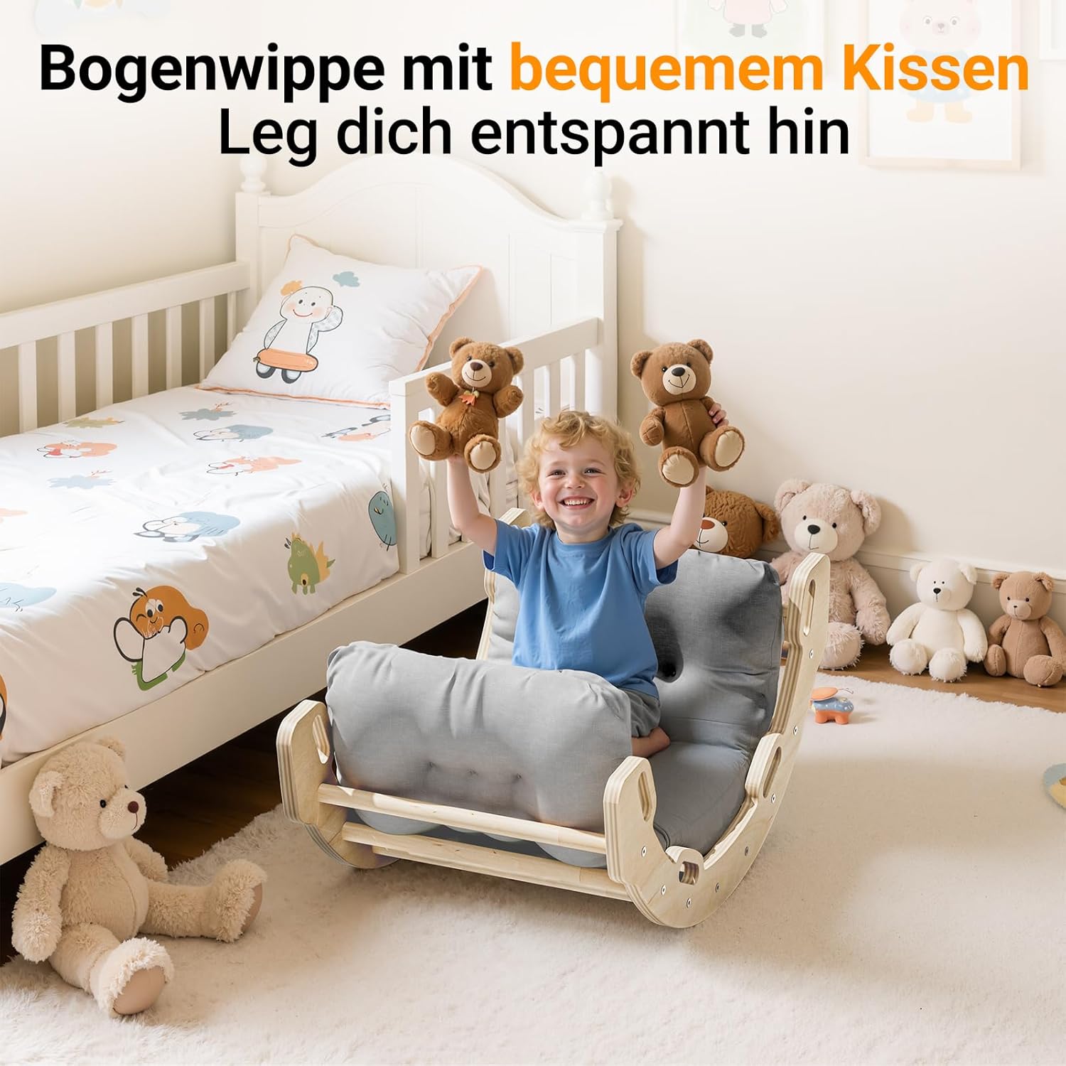 Multi-Use Design – Functions as a climbing arch, cozy seesaw with cushion, kids’ desk for reading or drawing, or toy storage shelf, adapting to your child’s needs.