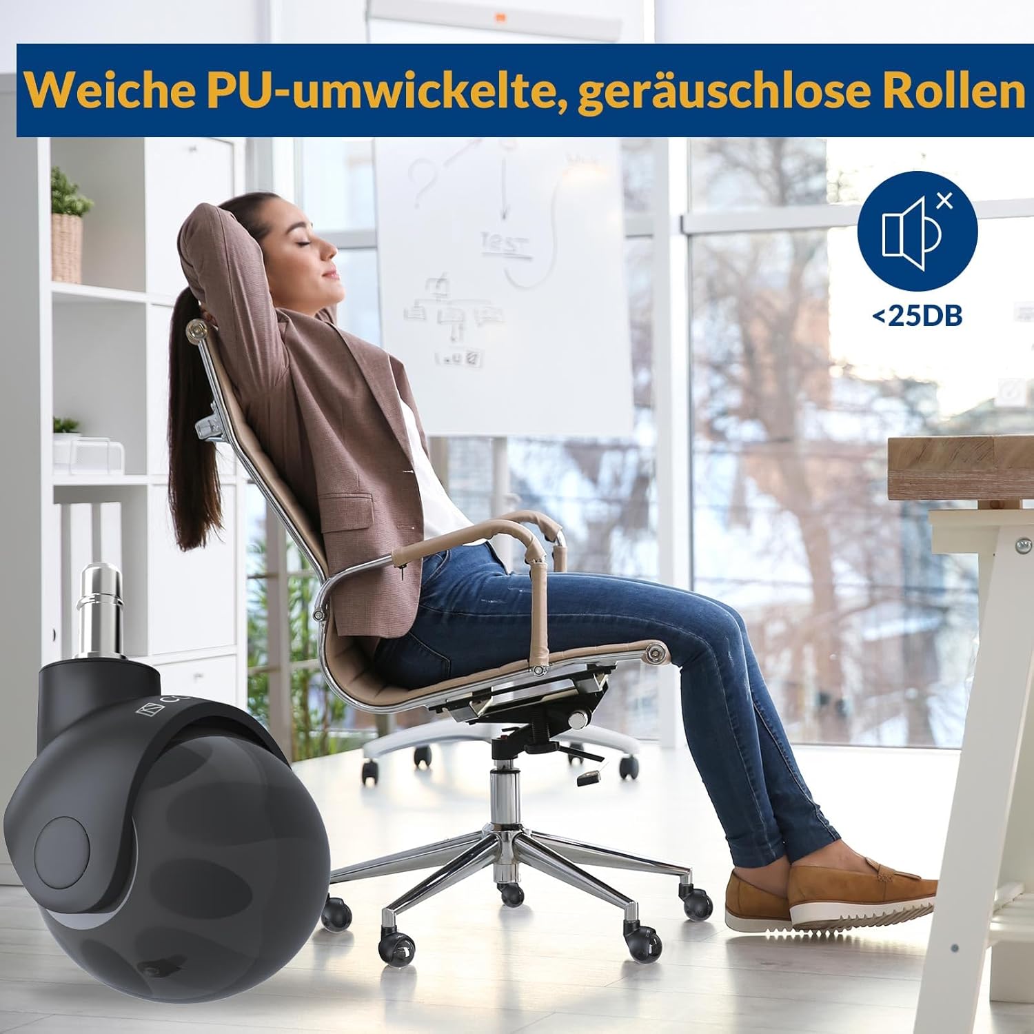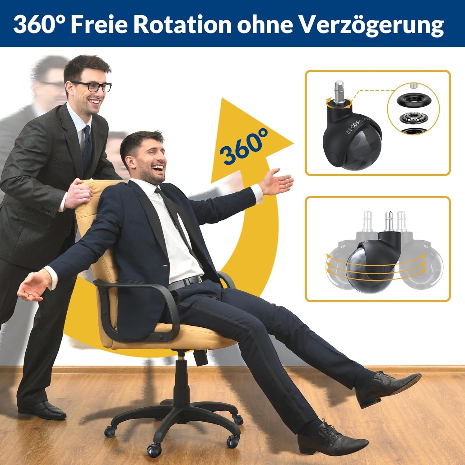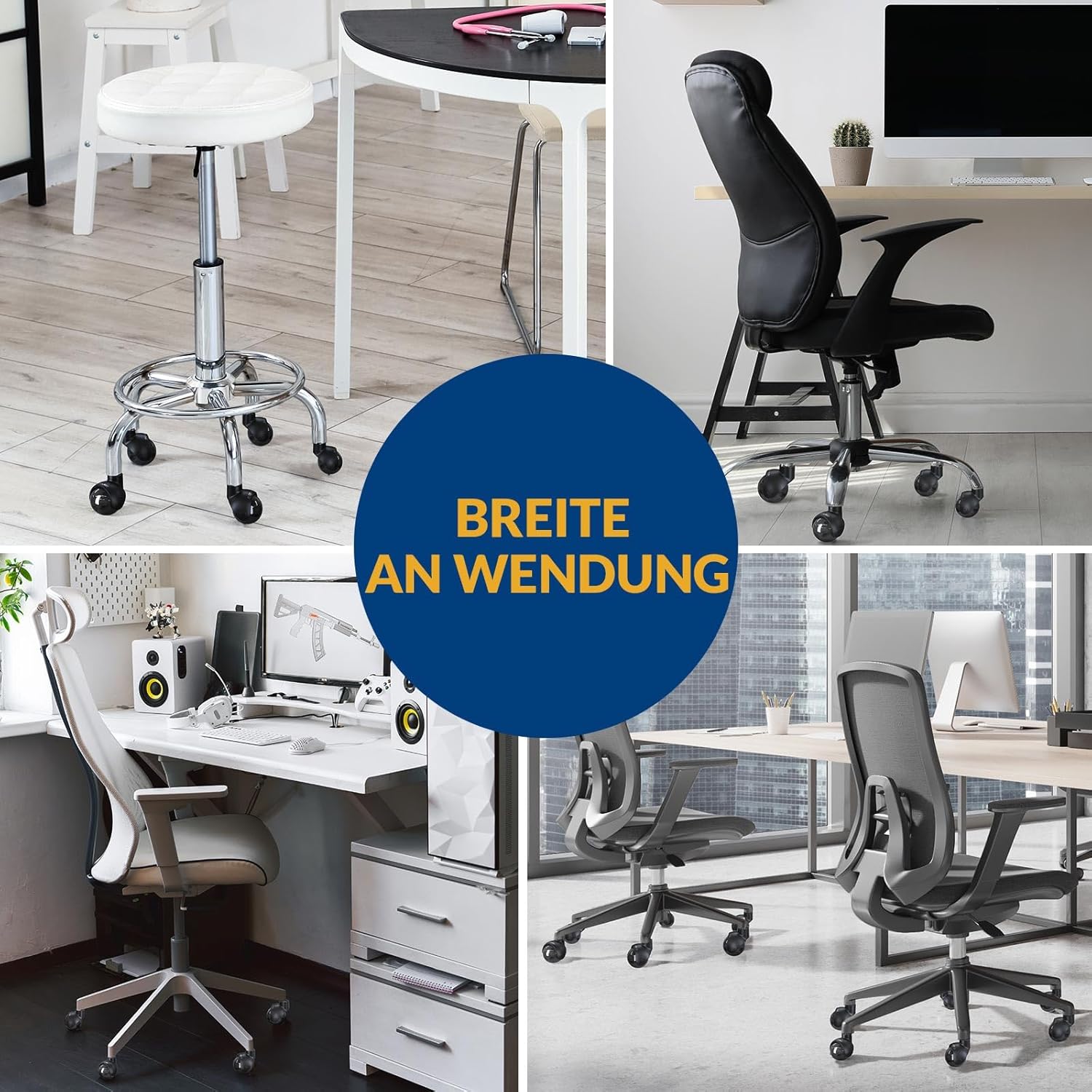 - The most innovative office chair casters of 2025!: Our brand-new, heavy-duty office chair casters are made of high-quality industrial steel, precision ball bearings, and durable polyurethane. These office chair casters easily handle loads of up to 295 kg.