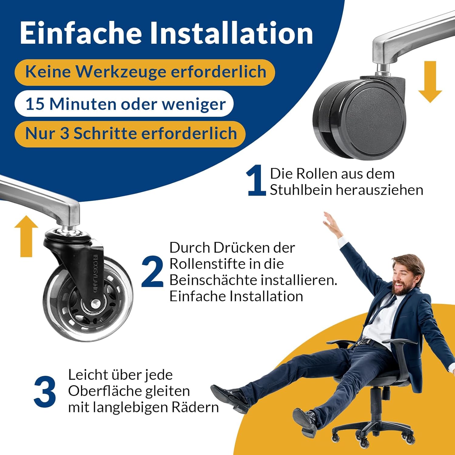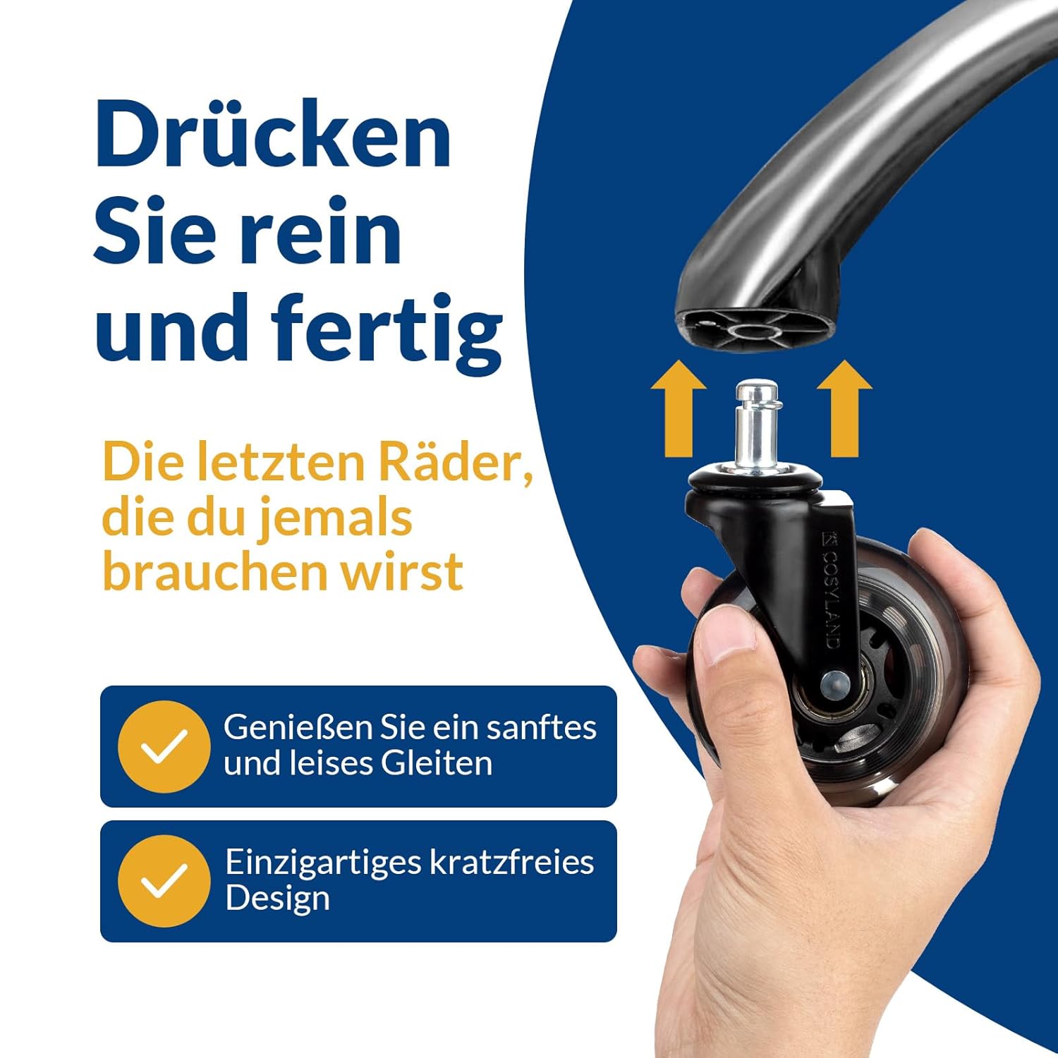 Fits 99% of Office Chairs: With a universal 11x22mm stem, COSYLAND chair wheels fit nearly all standard office chairs, offering an easy upgrade for smoother, quieter mobility.