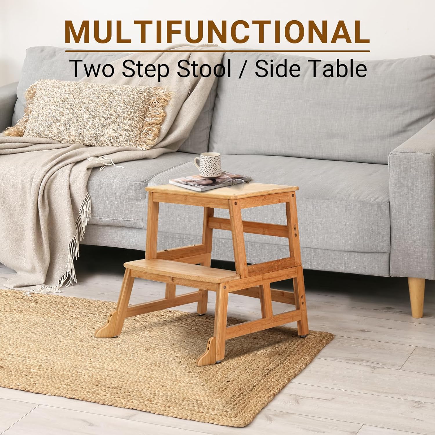 Transformable Learning Tower:This two-step stool is made from hand-selected, sustainable bamboo, making it sturdy and giving it a beautiful natural color. It can also be converted into a side table, providing extra space for cups, books, remote controls, and more.
